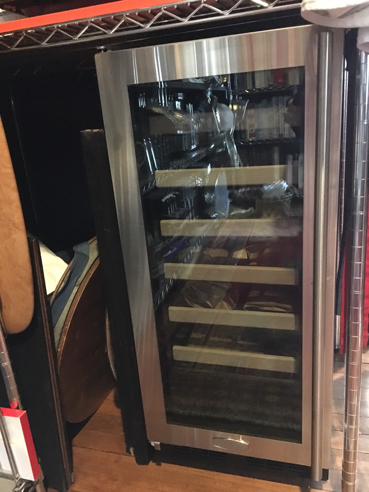 The drawers are super sturdy and edged in real wood, each one holds 9 bottles, so there are 54 bottles stored in here!  It is dual zone, so you can keep your whites and bubbles slightly cooler than your reds. We are keeping the top drawer for vermouth and Lillet and port, and anything we need for cocktails so that they no longer take up room in the big fridge.