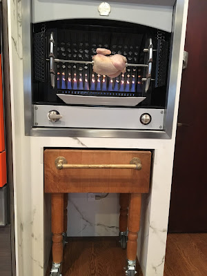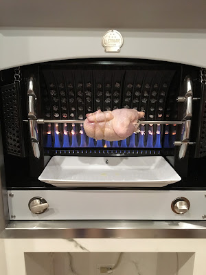 Since then we have done several more chickens and one leg of lamb.  Everything comes out perfectly, and it is the easiest thing in the world to use.  We had friends over for dinner on a weeknight, and it made our lives so easy, just pulled two chickens out and set them up right before they arrived, and by the time we had finished our cocktails and nibbles, they were done.  Our pals agreed it was one of the best chickens they had ever had.