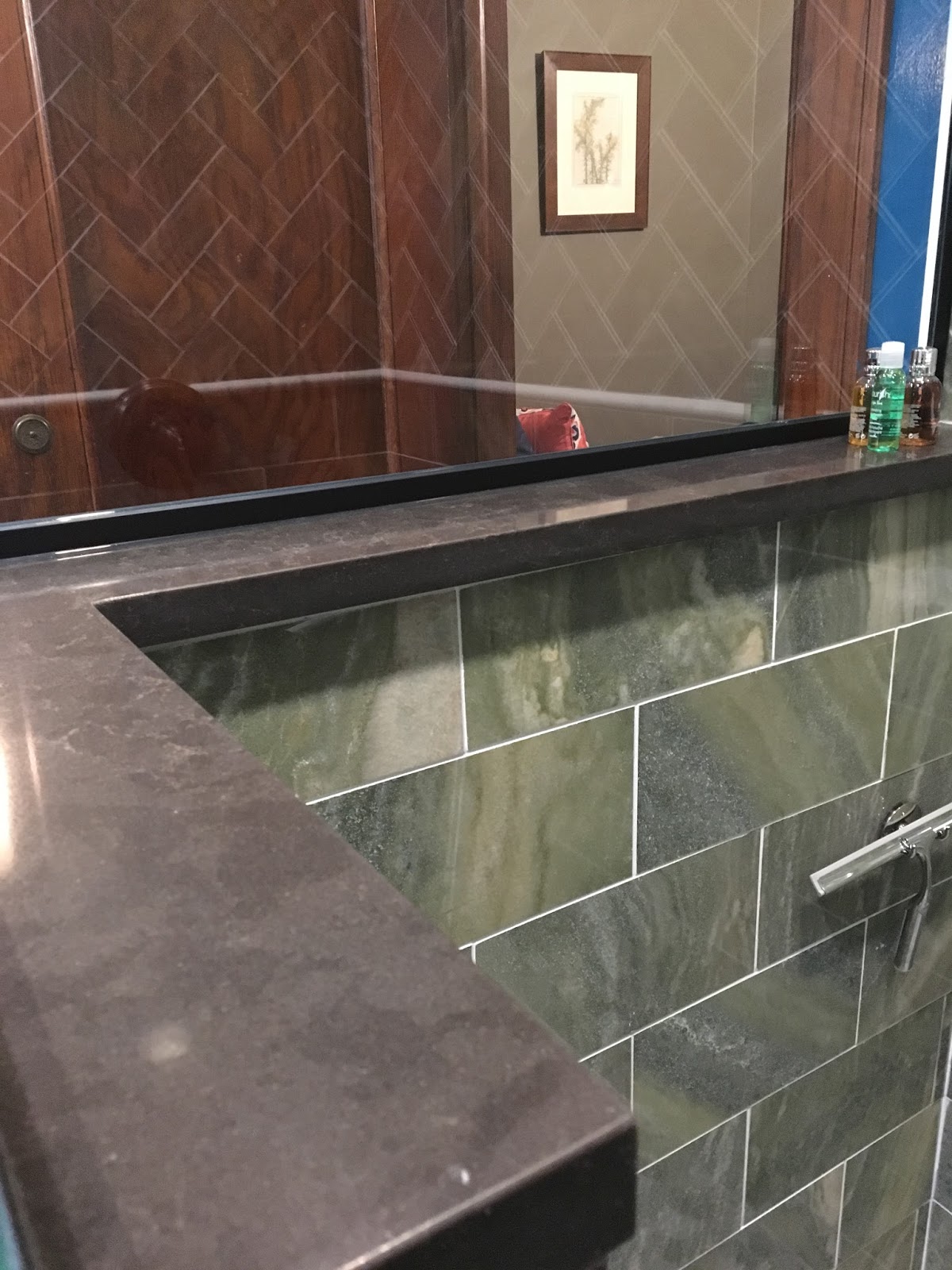 Same interior shelf detail as upstairs, in a different rich Silestone
