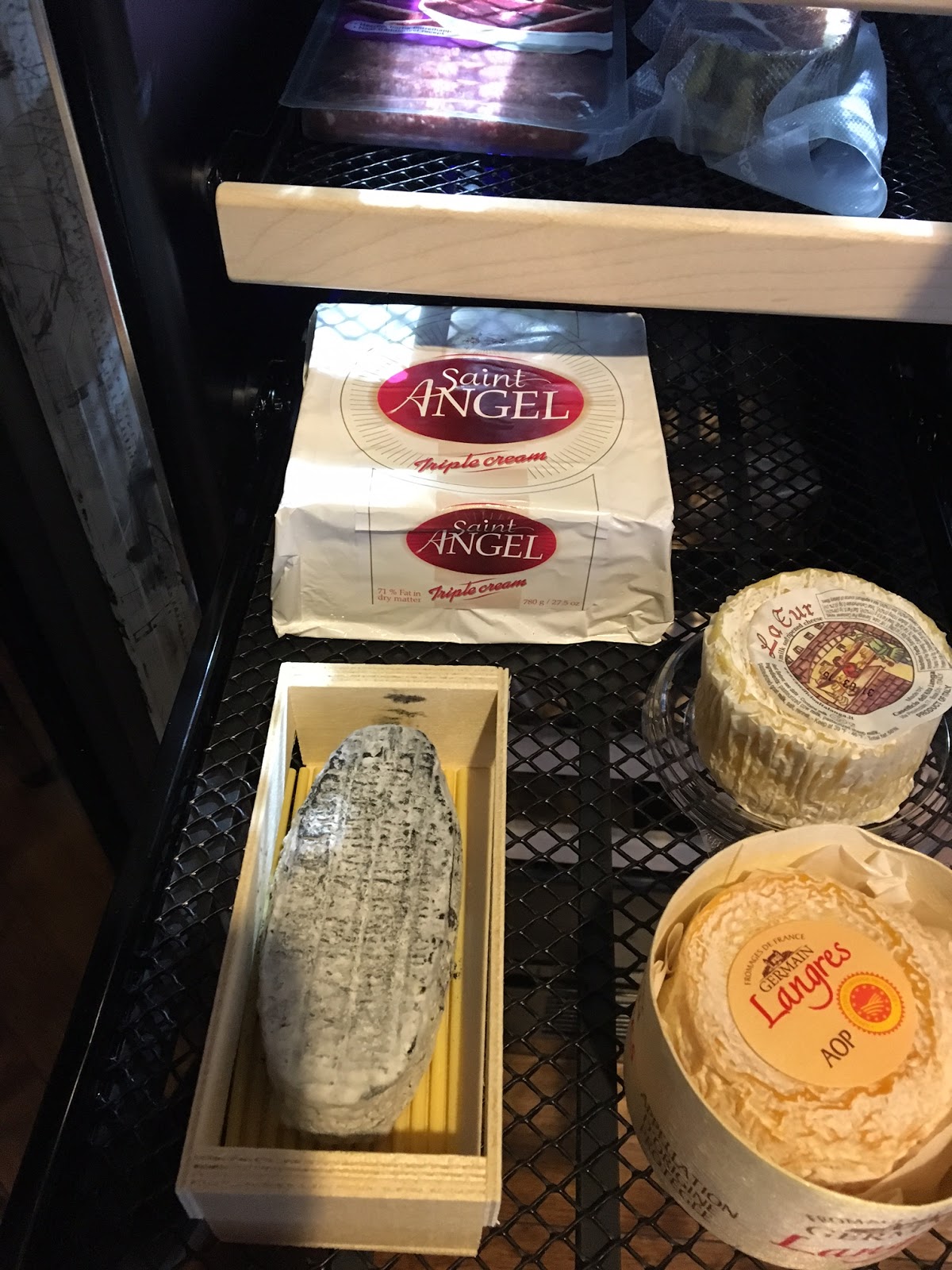 Now for the real kicker.  The cheese fridge!  I know, I know, the very idea of a cheese fridge is beyond luxurious.  But we love our cheeses!  Can't be helped.  And perfect cheese storage is both warmer and more humid than your regular fridge.  For most people, we recommend you simply buy cheeses as you need them, and eat them within a week or so.  I also highly recommend you remove them from the fridge about 2 hours before you want to serve them, for optimal texture and flavor.  For us, with the amount of entertaining we do, and the fact that we nearly always do a cheese course with our dinners, we thought it would be a really fun indulgence to have a special storage set up just for that purpose in the kitchen library, so we got the small 15" wine fridge.